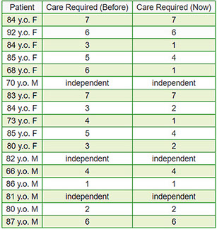 A few of them who were close to not being able to get out of bed could get into their wheelchairs and move on their own.
