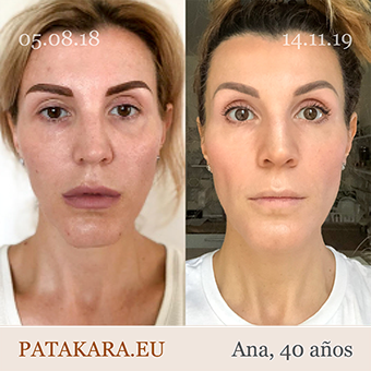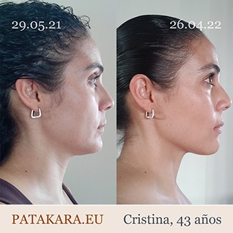 "Estoy muy contenta con mi Patakara y los ejercicios extra. Es la respuesta a no querer introducir sustancias ajenas en mi cara. Solo con él he recuperado el óvalo facial deformado por los edemas y el bajo tono muscular."