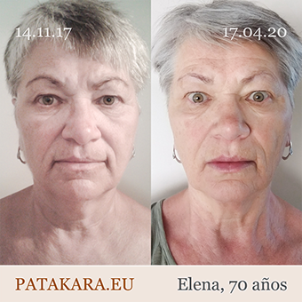"Ya tras algunos meses de uso, la piel de la parte inferior de la cara, el cuello y los párpados recuperó la turgencia, los pómulos volvieron a ser visibles y muchas manchas desaparecieron. El dibujo de los labios, la forma del rostro y la línea de la mandíbula se volvieron más definidos. Los ojos eran más claros y su color, más intenso. Patakara fue un golpe de suerte para mí, una solución simple y efectiva para mis problemas estéticos.”